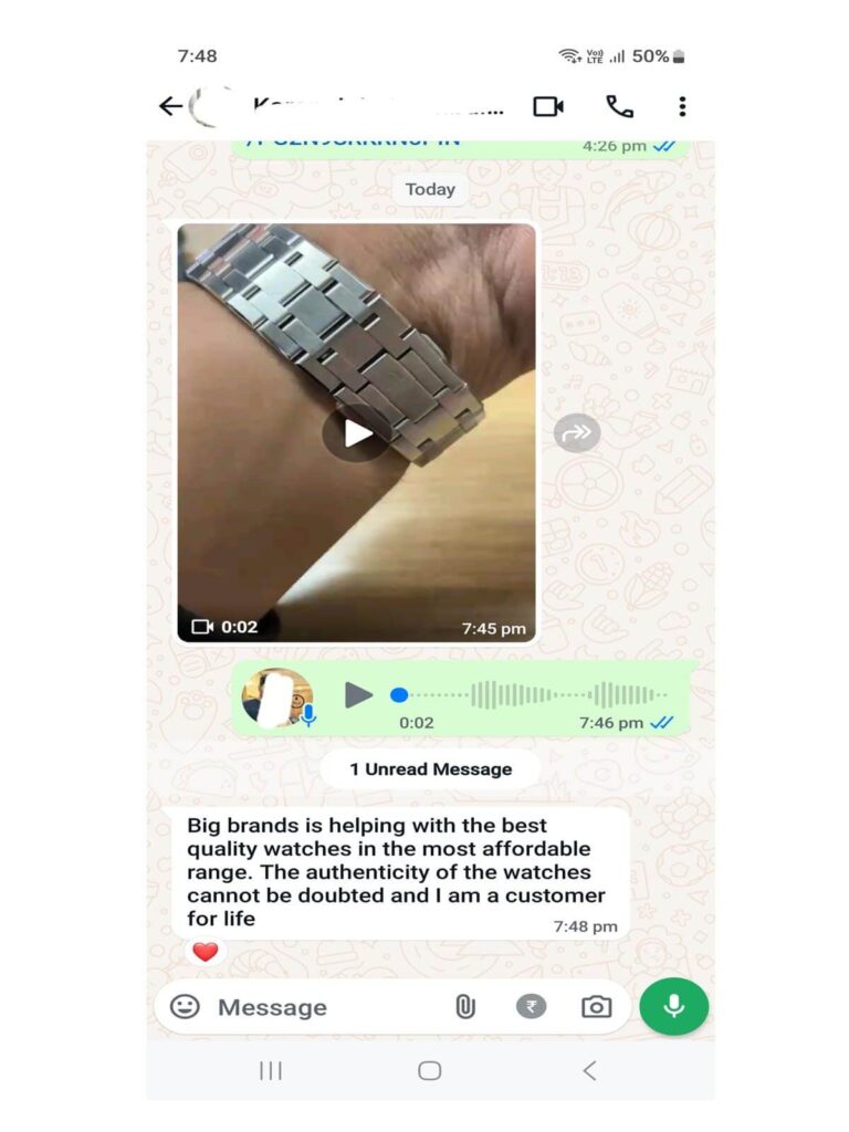 We offer authentic watches at 50-60% discounts with guaranteed authenticity at official stores. Enjoy cash on delivery and credit card facilities for convenience. In Mumbai, we provide open box delivery so you can inspect your watch before purchase. To order, simply send a screenshot via WhatsApp. Thank you for choosing us!